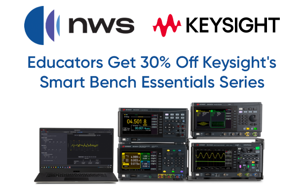 NWS is offering 30% off Keysight's Smart Bench Essential series products to help educators set their labs up for success. Eligible Models • EDU33211A • EDU33212A • EDU36311A • EDU34450A • EDUX1052G Ends March 31, 2025 Shop Models